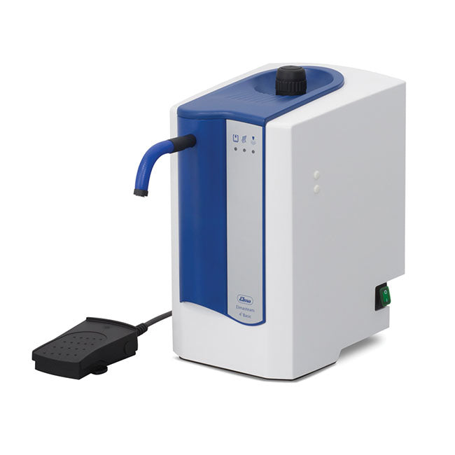 Includes steam tweezers, test strips to determine water hardness and chloride content, filling sieve, maintenance hose, flushing set, pressure vessel screw cap, and foot switch.