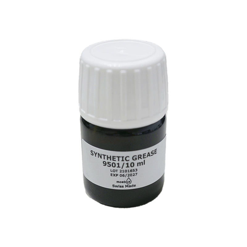 Dark blue synthetic grease from Moebius is for slow moving, time setting steel frictions