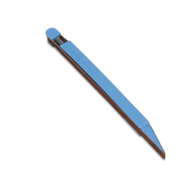 Fast, easy, economical way to reach detailed, hard-to-reach ares. Plastic stick, tapered at the end, holds a replaceable 1/4" wide sanding belt. The aluminum oxide belt is held in place by a patented spring-loaded mechanism that allows the belt to be rotated 360 degrees. Rotating the belt exposes a new sanding surface and allows the entire belt to be used.