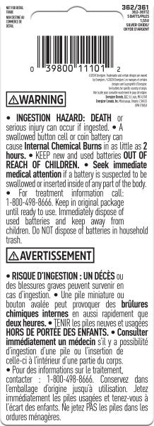 Note: Possible replacements include R361 or R362 (Renata) and S361 or S362 (Murata).