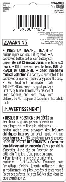 Note: Possible replacements include R394 (Renata) and S394 (Murata).
