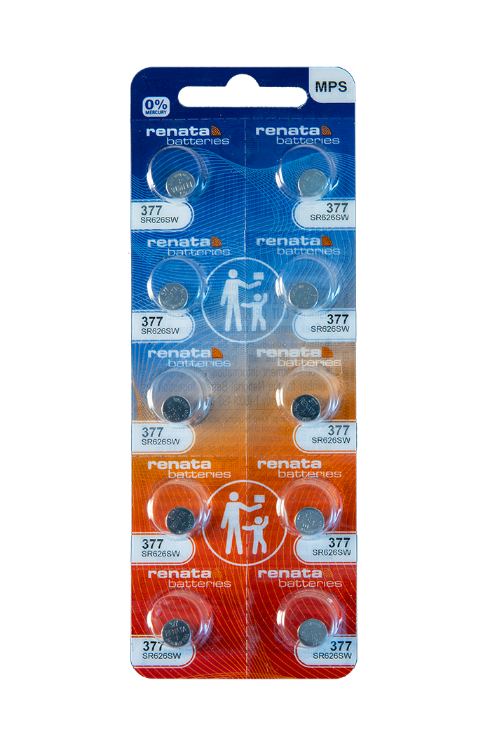Renata Silver Oxide Battery, 377, SR626SW, SR66, 6.8mm x 2.6mm - Strip of 10