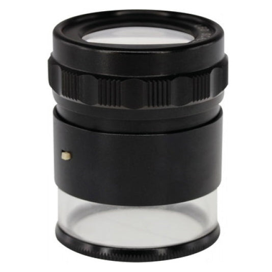 Magnifying glass with LED light and scale graduated at 0.1mm.