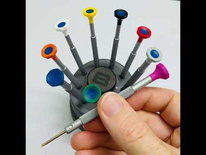 Includes nine screwdrivers and one set of extra blades per size