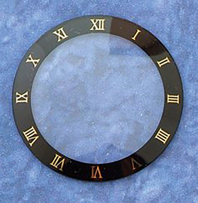 Domed Mineral Glass Crystal, Black Trim with Roman Numerals