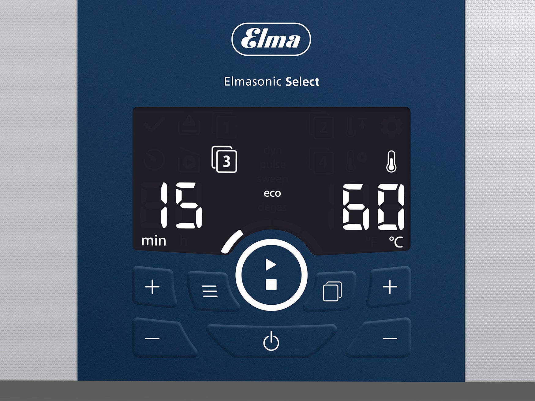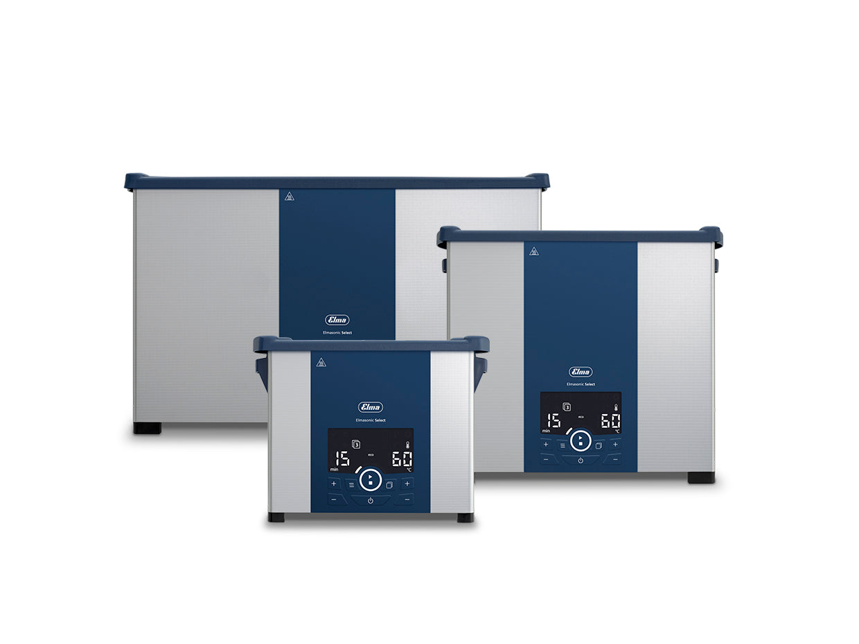 The Elmasonic Select series are equipped with 37 kHz ultrasonic frequency, five ultrasonic modes, the possibility to save up to four cleaning programs. Elmasonic Select devices are versatile. Application-specific accessories such as baskets, noise protection boxes, holders, etc. ensure the best cleaning results and make cleaning easier. The limit temperature can be set individually from 104 - 140 °F for temperature sensitive parts or temperature sensitive processes and also can be switched from Celsius to Fahrenheit. Temperature control is adjustable in increments of 5° from 77 - 176° F.