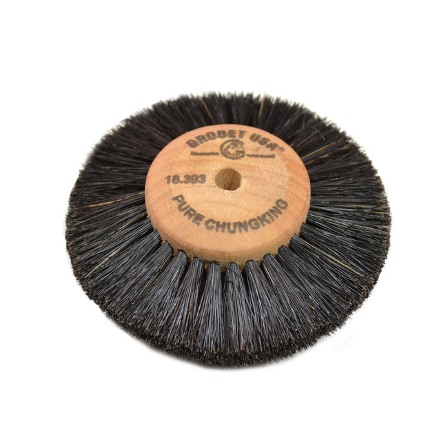 Chungking bristles mounted into hardwood hubs with 1/4" arbor holes for use on tapered spindles of polishing motors. Sold individually.