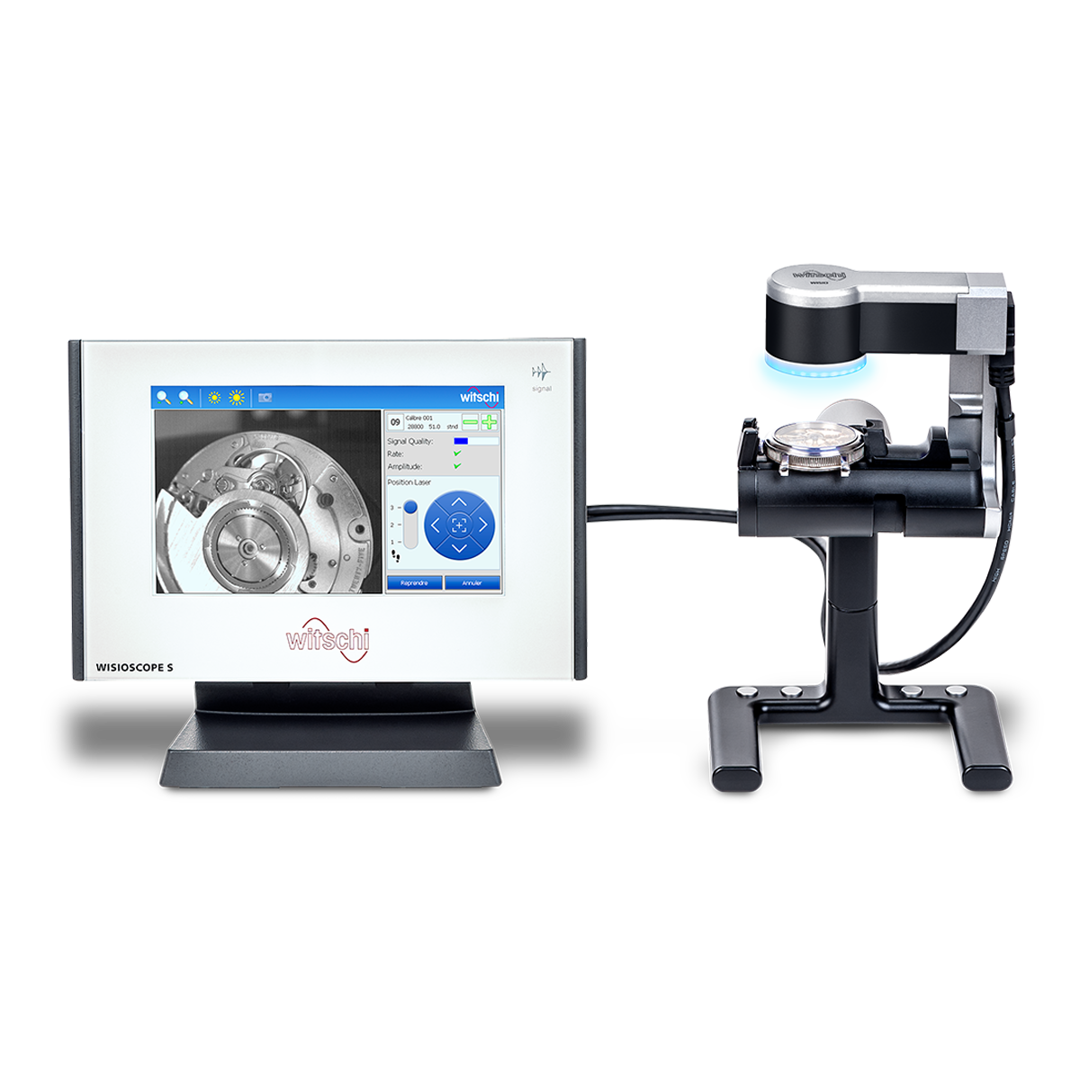 The technically advanced Witschi WisioScope S tests mechanical watches acoustically and optically thanks to the latest design Wisco microphone. Beat noises are measured acoustically, and balance wheels optically. The technically advanced Wisco microphone can simultaneously measure acoustically and optically. WisioScope S does not need a computer for measuring. Measurements taken with a laser. Compact and space-saving, this device covers all mechanical watch testing possibilities.